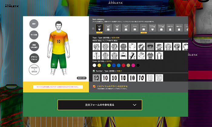 番号やチーム名を入れて好みのウエアが簡単に出来る新システム